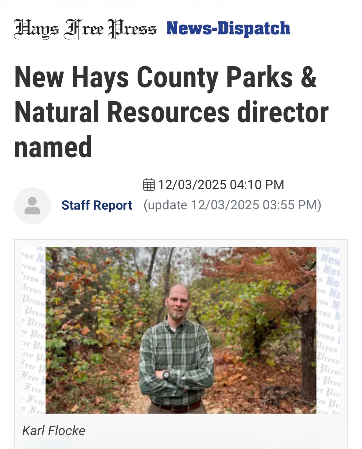 My photograph highlighting the newly appointed Parks & Natural Resources Director was published across multiple news outlets, marking a significant milestone in my photography career.